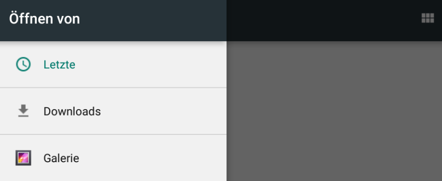 Hast du das Büroklammer-Symbol angetippt, so erscheint je nach Android-Version ein Fenster, in dem du die Dateien und Fotos auf deinem Gerät durchsuchen und auswählen kannst. Je nach Android-Version kann es hierzu nötig sein, über das Drei-Striche-Menü (Burger-Menü) in ein anderes Verzeichnis zu wechseln.