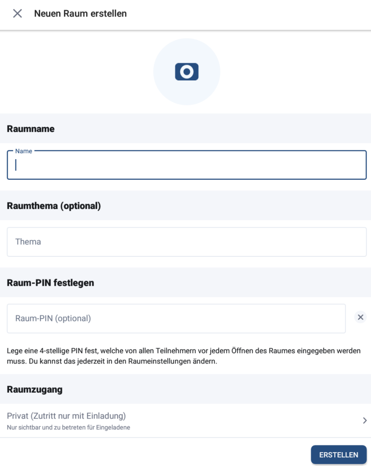 Wenn du den Raum besonders sichern willst, dann vergib noch eine 4-stellige Raum-PIN. Diese müssen alle Gruppenmitglieder immer vor dem Öffnen des Raumes eingeben. Diese PIN kannst du auch nachträglich in den Raumeinstellungen ändern.