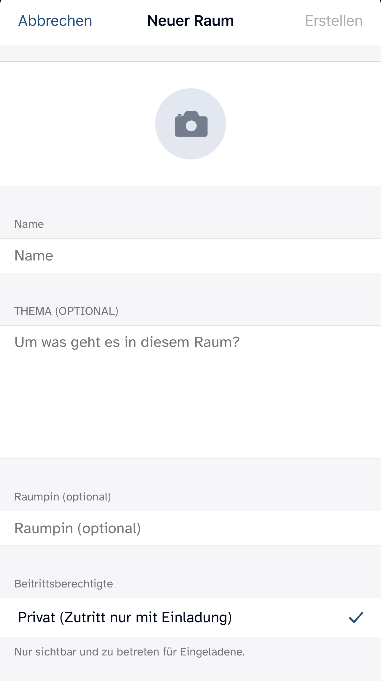 Erstelle Raum (Gruppenchat):