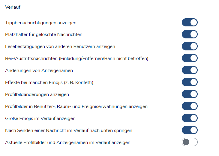 Im Bereich "Optionen" kannst du weitere Einstellungen vornehmen wie die Anpassung der Schriftgröße oder das Anzeigen von Zeitstempeln und Lesebestätigungen.