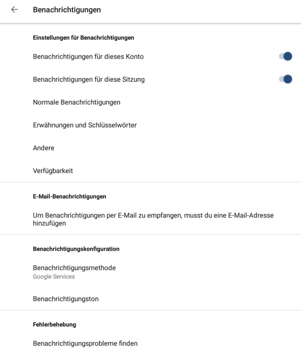 Durch Klick auf Andere legst du fest, ob du bei Raumeinladungen, Anrufen oder auch Raumaktualisierungen benachrichtigt werden möchtest.