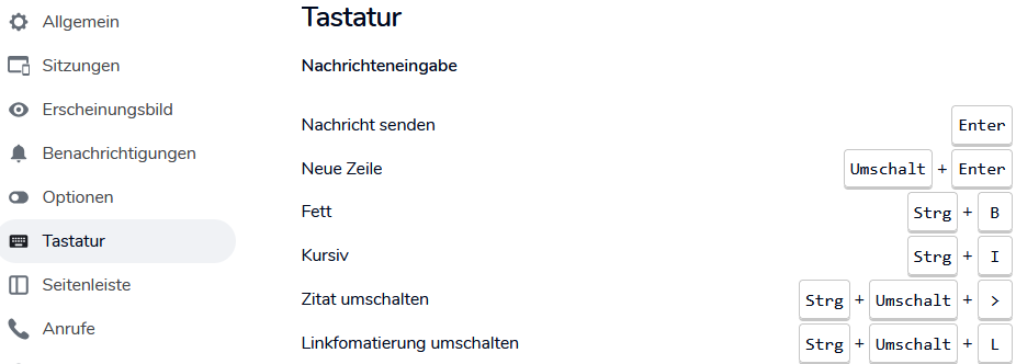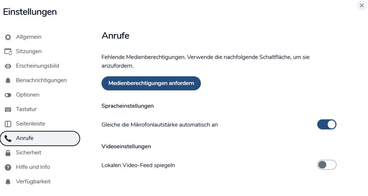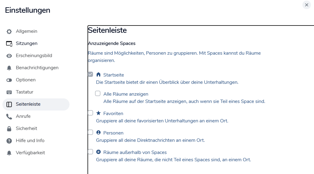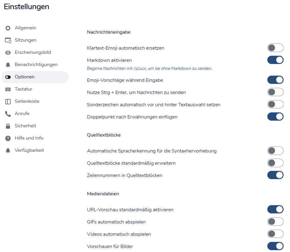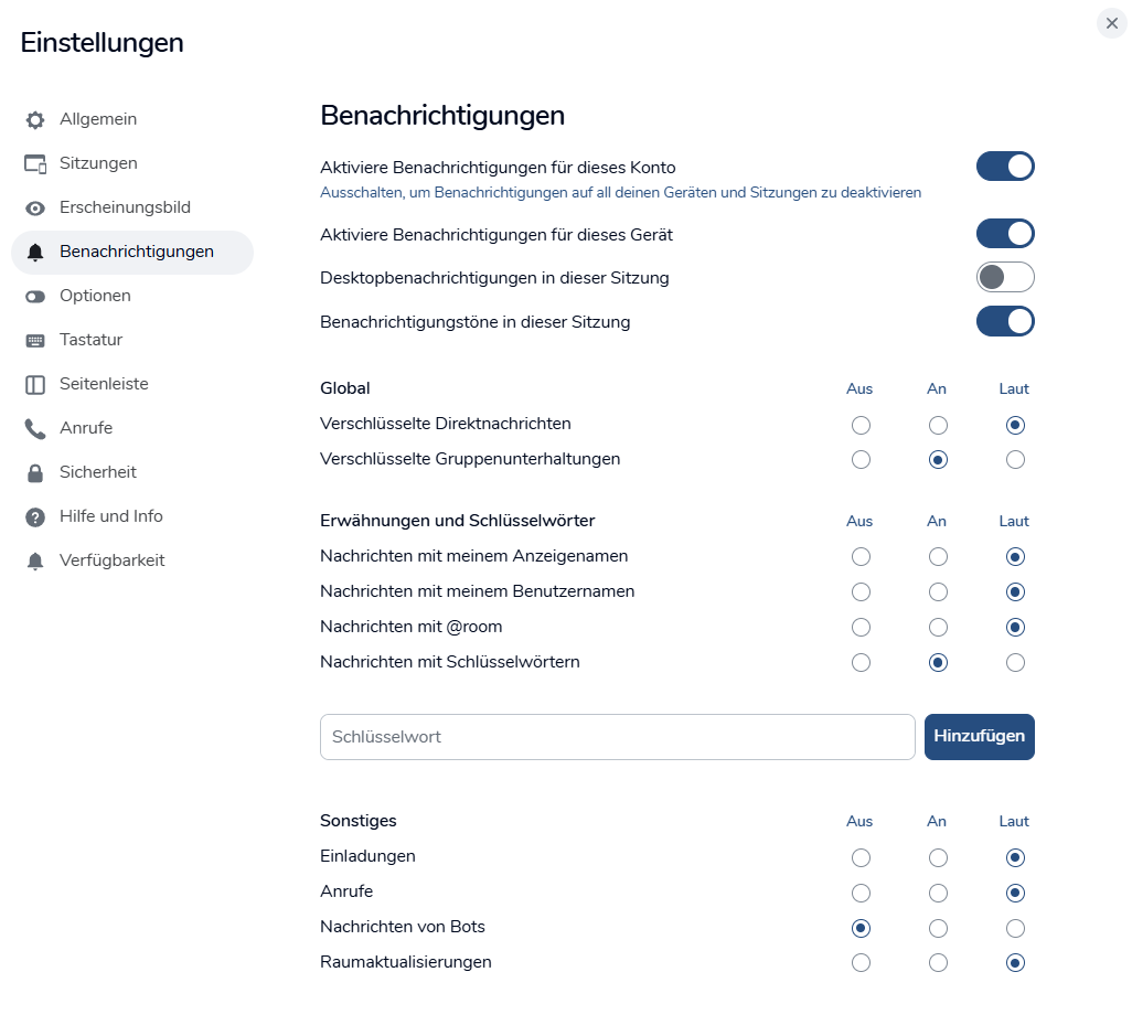 Dieselben Einstellungen kannst du vornehmen für Einladungen, Anrufe, Nachrichten von Bots oder Raumaktualisierungen.