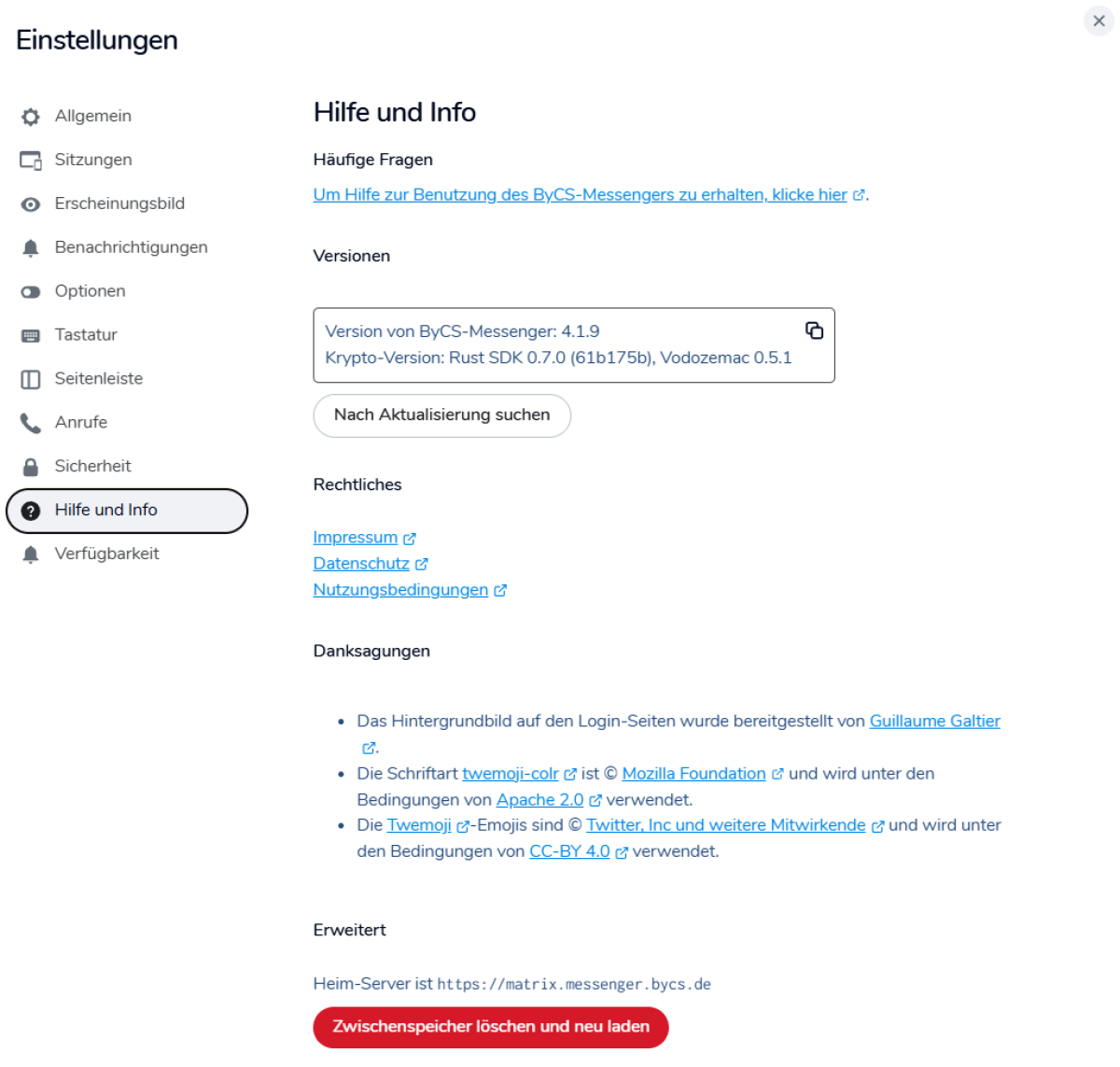Im Abschnitt Nachrichtensuche findest du den Link für den Download der Desktop-App des ByCS-Messengers. Hier kannst du verschlüsselte Nachrichten durchsuchen.