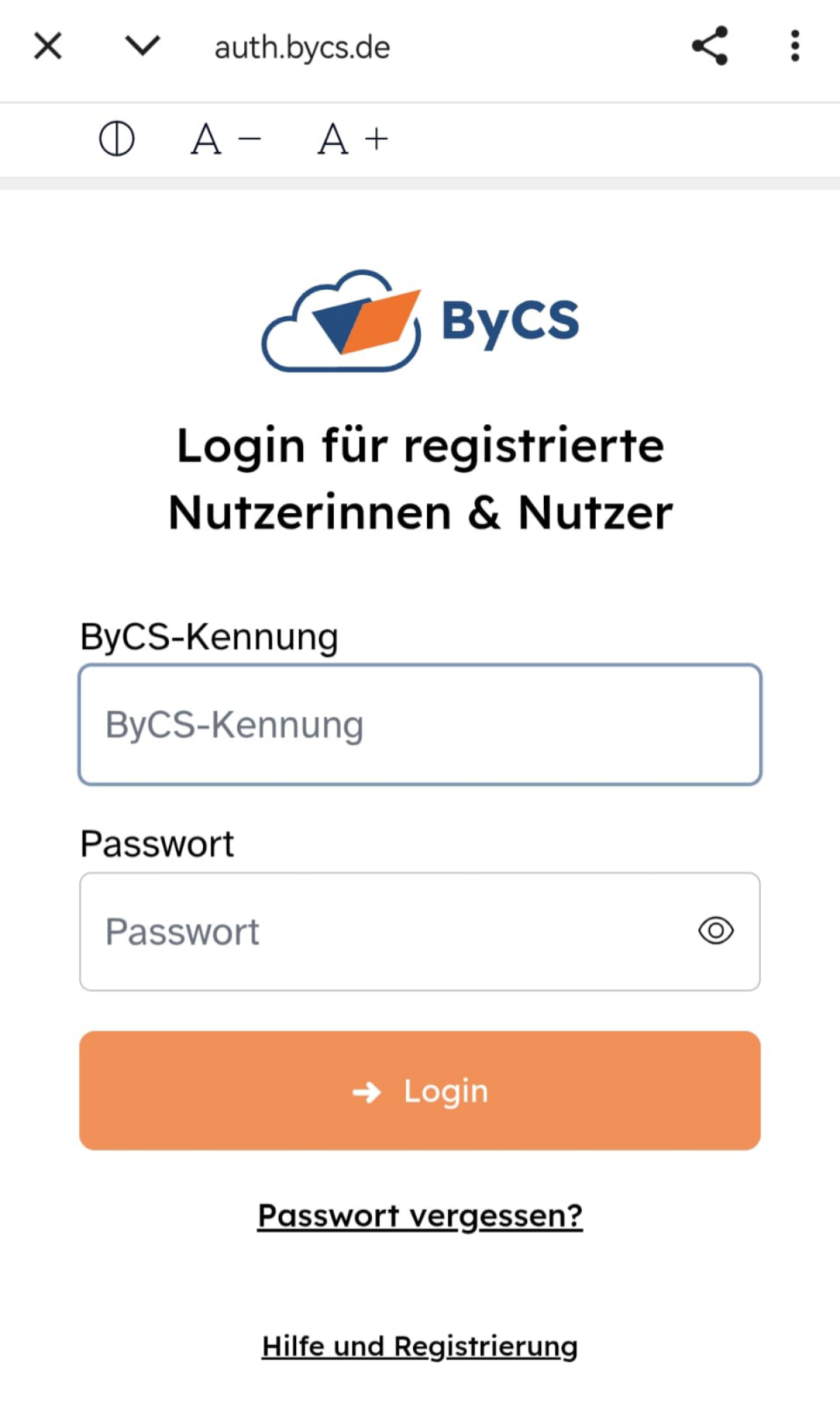 Es öffnet sich ein Fenster. Hier gibst du deine ByCS-Kennung und dein zugehöriges Passwort ein. Schließe ab mit einem Klick auf Login.