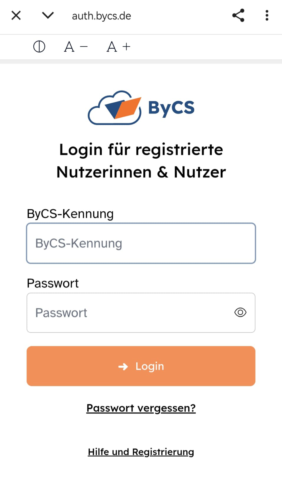 Logge dich dazu unter www.bycs.de ein und wähle als Anwendung den Messenger an. Verifiziere dich hier mit dem gerade erzeugten 4-Wort-Schlüssel.