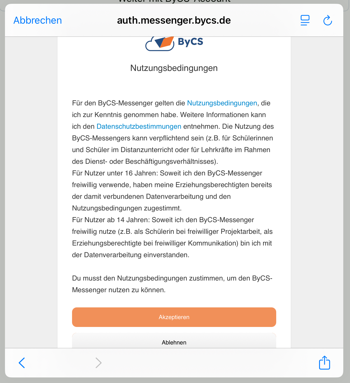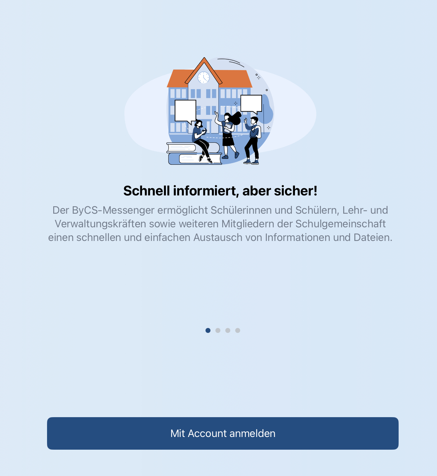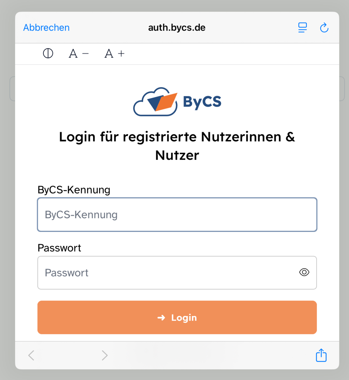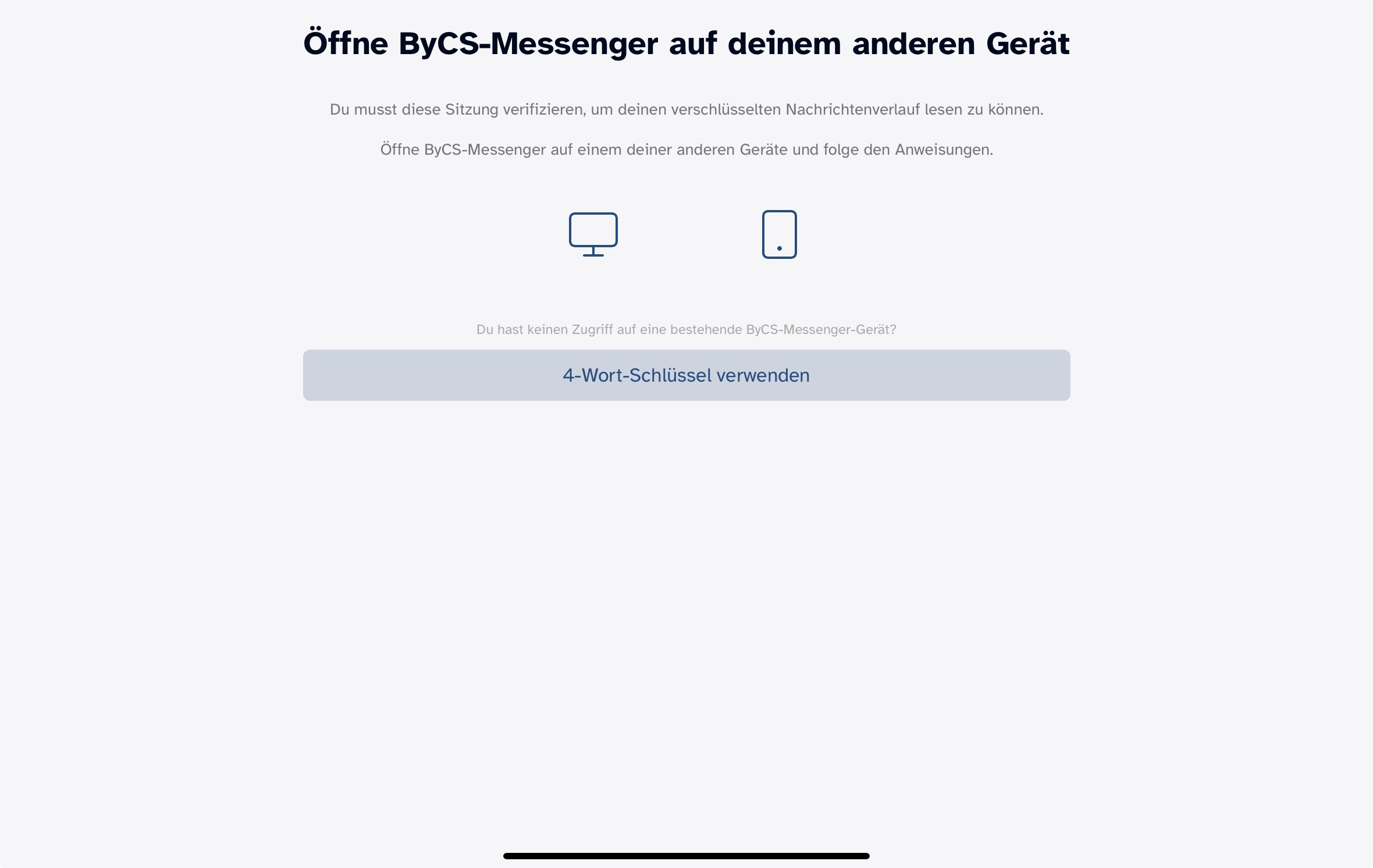 Für die Anmeldung auf https://messenger.bycs.de benötigst du deine ByCS-Kennung und das zugehörige Passwort. Nach erfolgreicher Anmeldung erhältst du deinen persönlichen 4-Wort-Schlüssel. Bewahre ihn sicher auf, da er für die Ende-zu-Ende-Verschlüsselung benötigt wird.