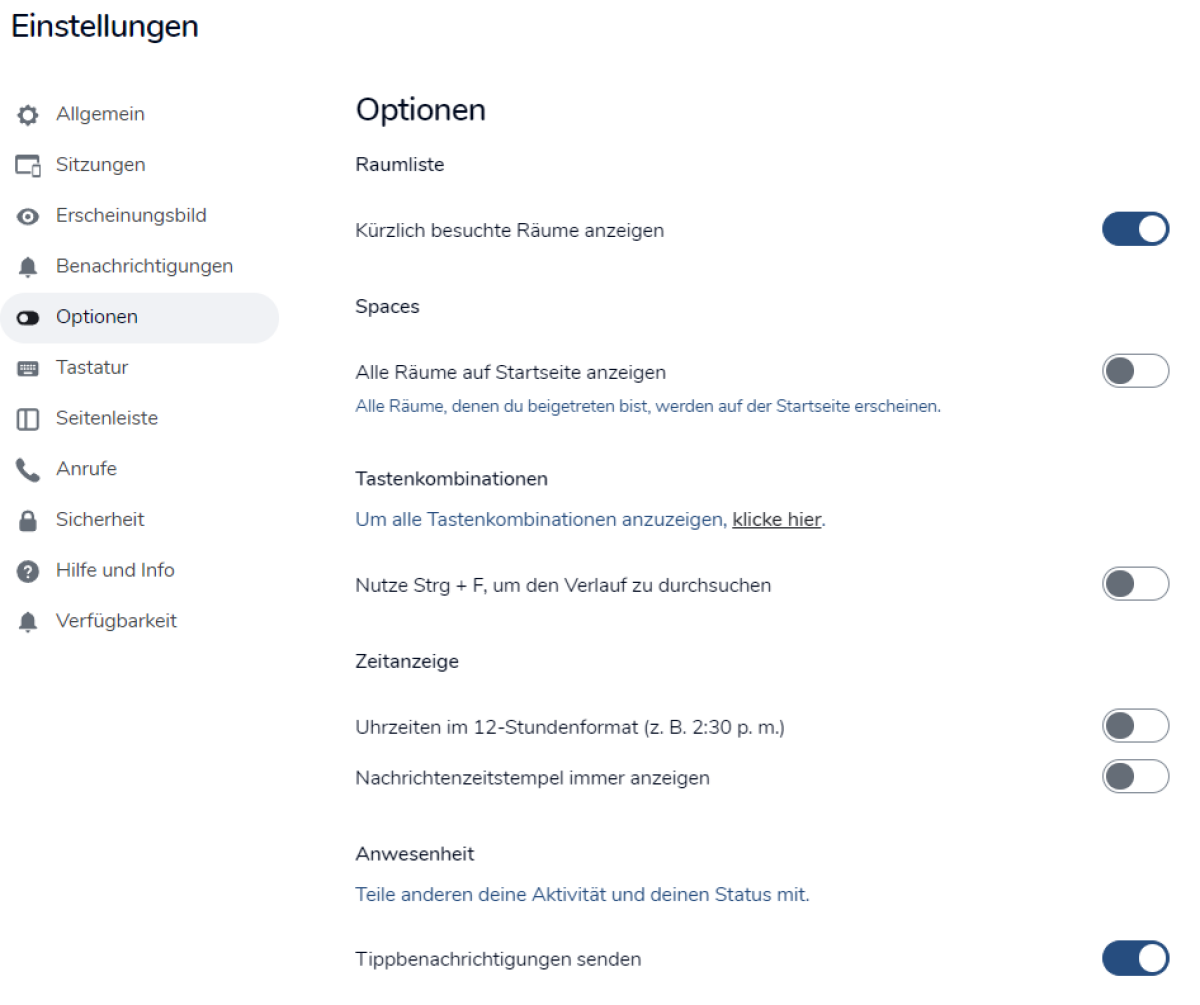 Unter Verlauf kannst du weitere Detaileinstellungen für die Chats in Räumen oder mit Personen vornehmen.