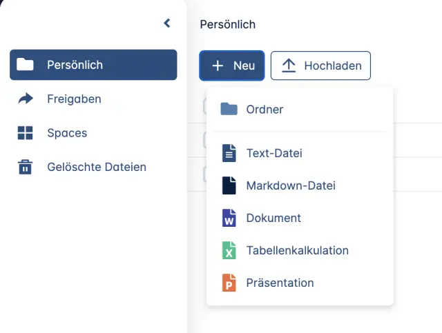Bereits bestehende Dateien wie Dokumente, Tabellenkalkulationen, Präsentationen, Formulare, Text-Dateien, Markdown-Dateien oder Verknüpfungen (Hyperlink) können direkt in Office bearbeitet werden.