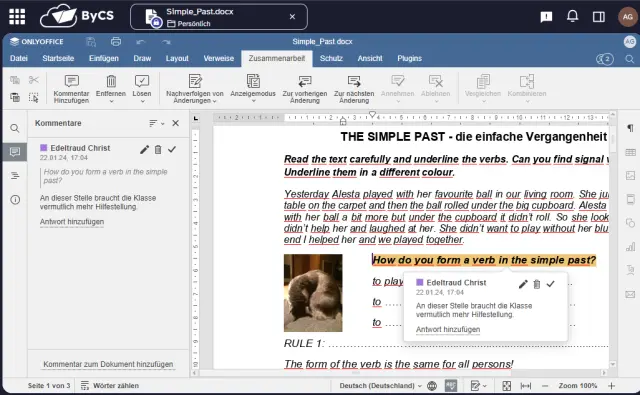 Sie können in Office gemeinsam mit anderen Personen Dokumente bearbeiten. Hierzu zählt insbesondere die Möglichkeit, Kommentare hinzuzufügen oder Änderungen nachzuvollziehen.