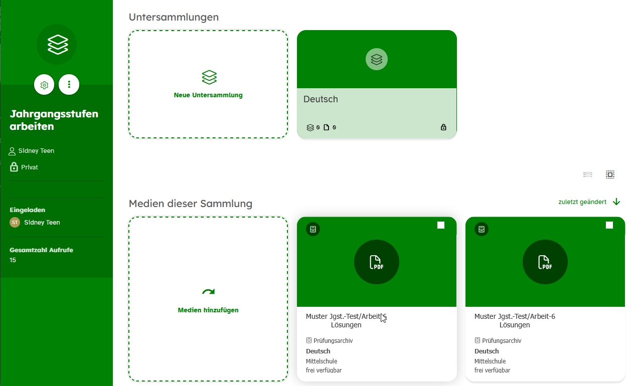 Im Hauptfenster findest du unter Medien dieser Sammlung alle Materialien, die du deiner Sammlung hinzugefügt hast.