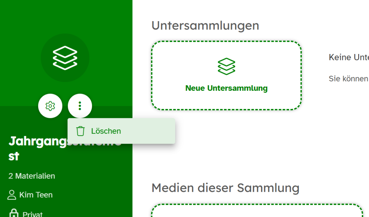 Beachte bitte, dass beim Löschvorgang auch sämtliche Untersammlungen entfernt werden, die du in dieser Sammlung angelegst hast.