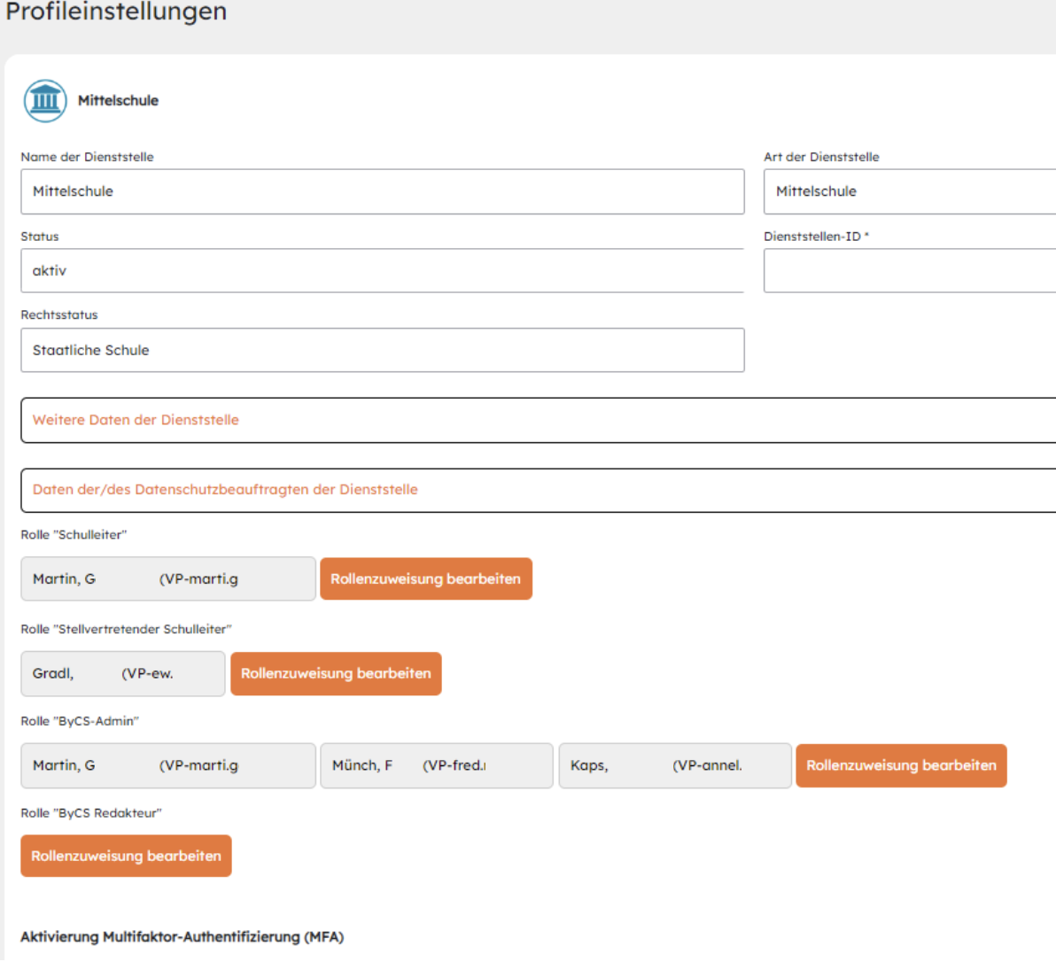 Das Schul-Profil ist der persönliche Bereich für die Schule.