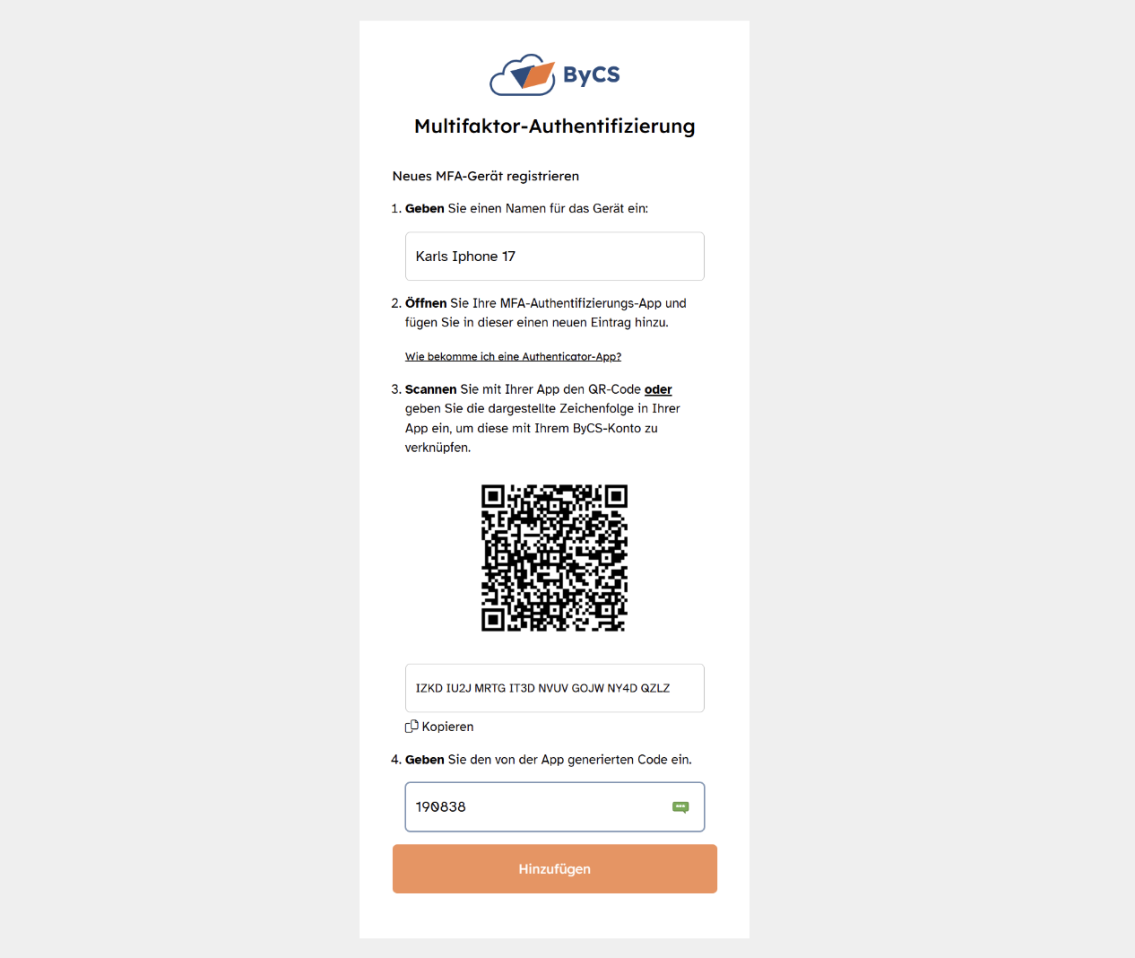 Ihr Gerät wird dann hinzugefügt und Sie können die MFA benutzen.