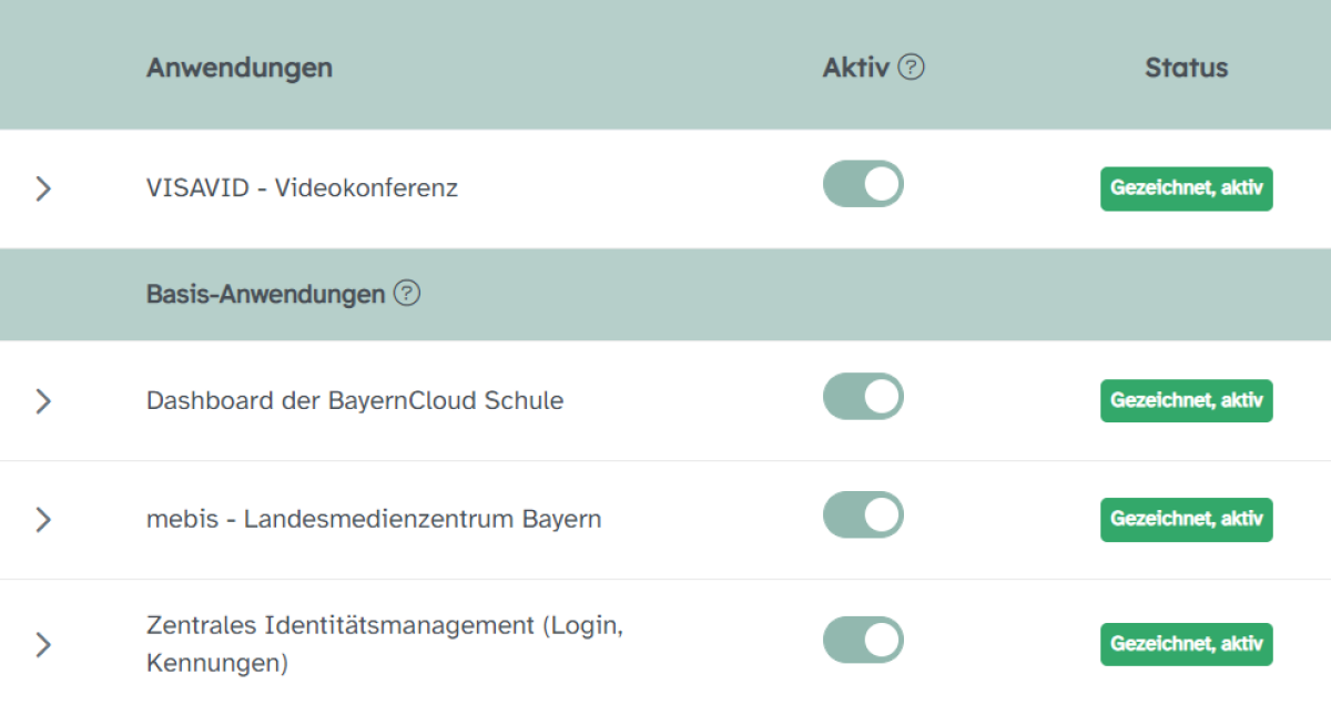 - Schulen können in der Anwendungs-Verwaltung einstellen: