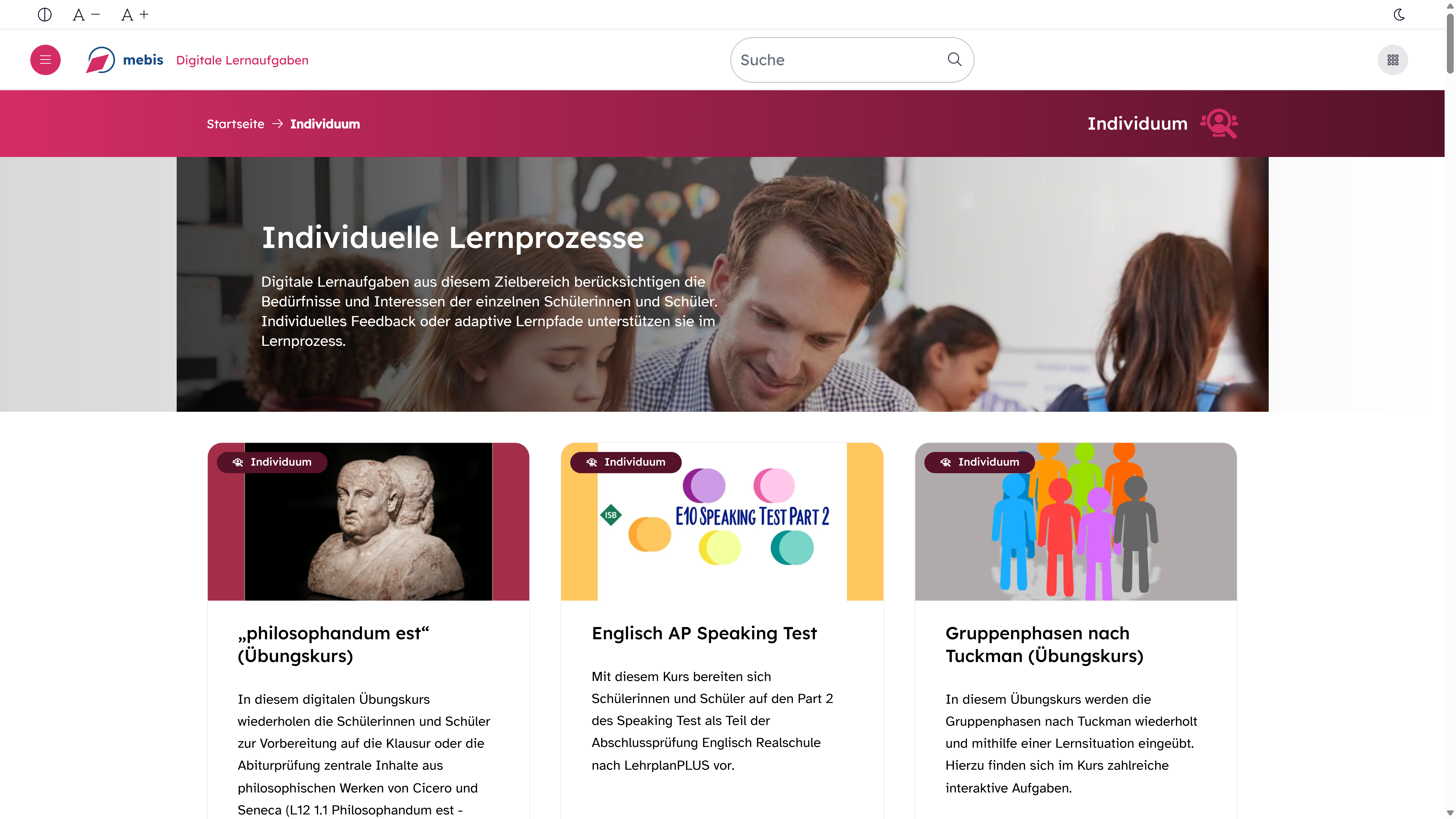 Unter der Kopf-Zeile ist der Bereich Digitale Medien und Werkzeuge.