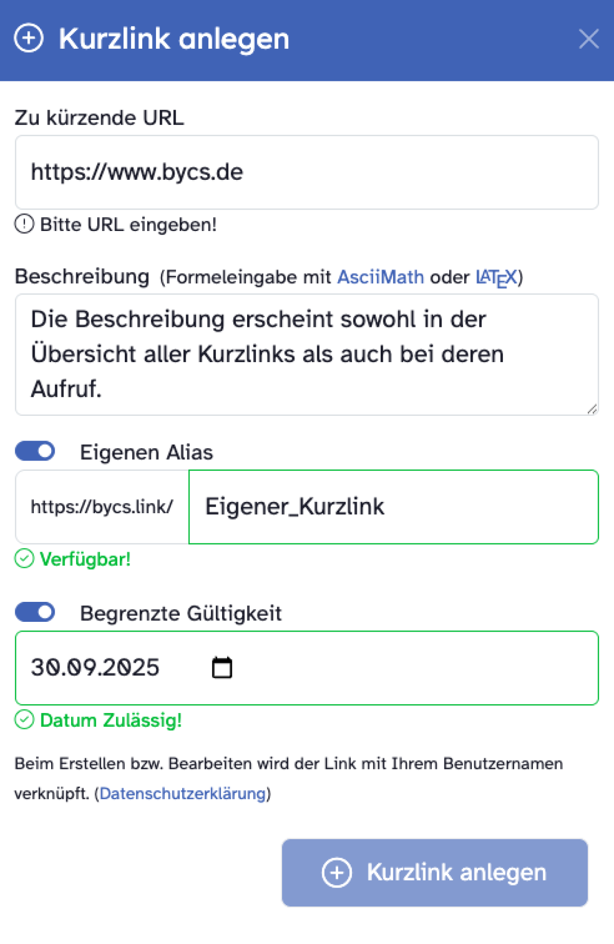 - dem Kurz-Link ein Datum geben, wie lange er gültig sein soll.