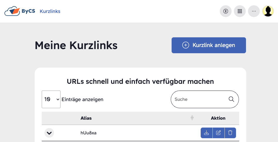 Sie können Ihre Kurz-Links immer selbst verwalten.