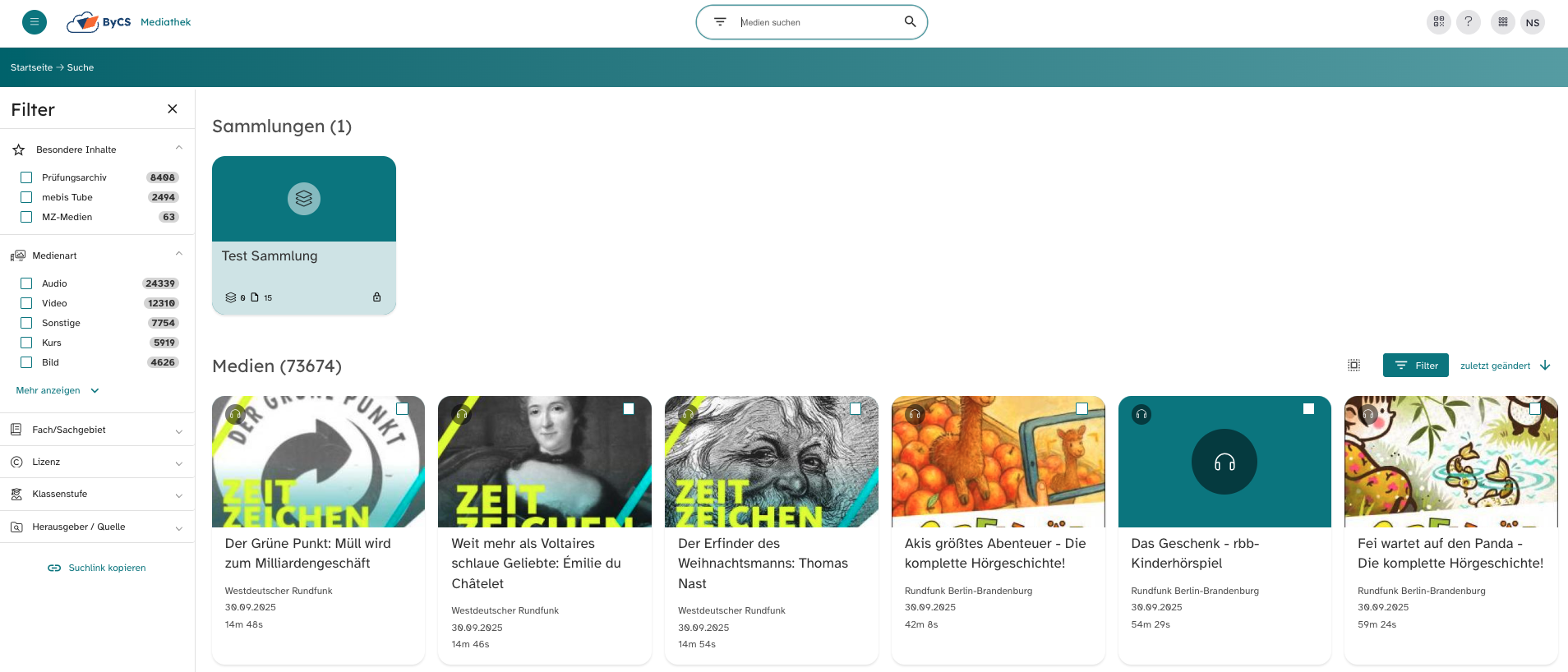 Bei dem Punkt Suche können Sie in der Mediathek nach Medien suchen.
