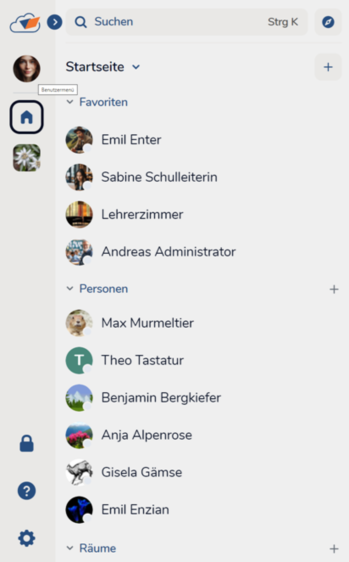 Dann klicken Sie auf das Plus neben Personen oder neben Räume.