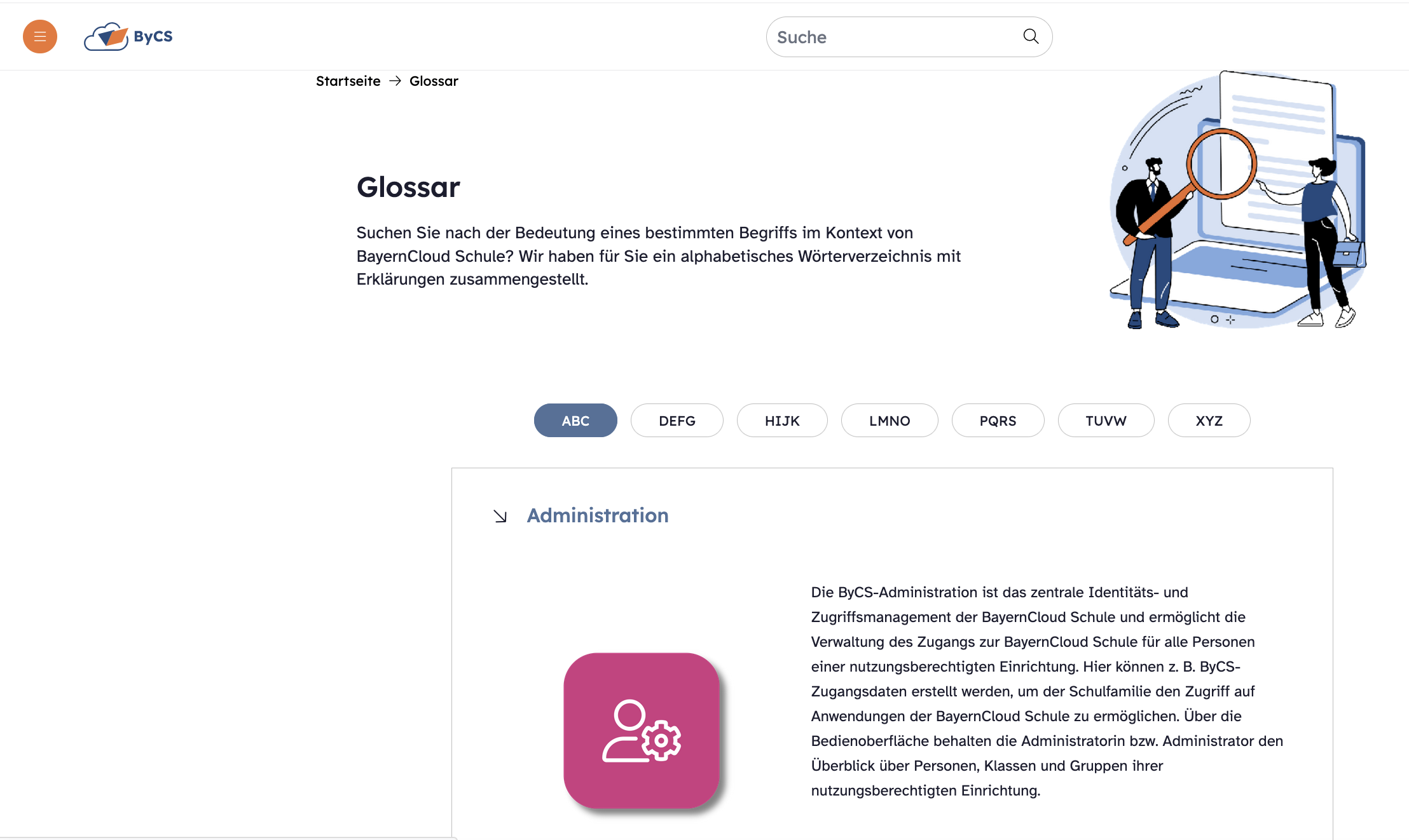 - den Bereich Glossar.
