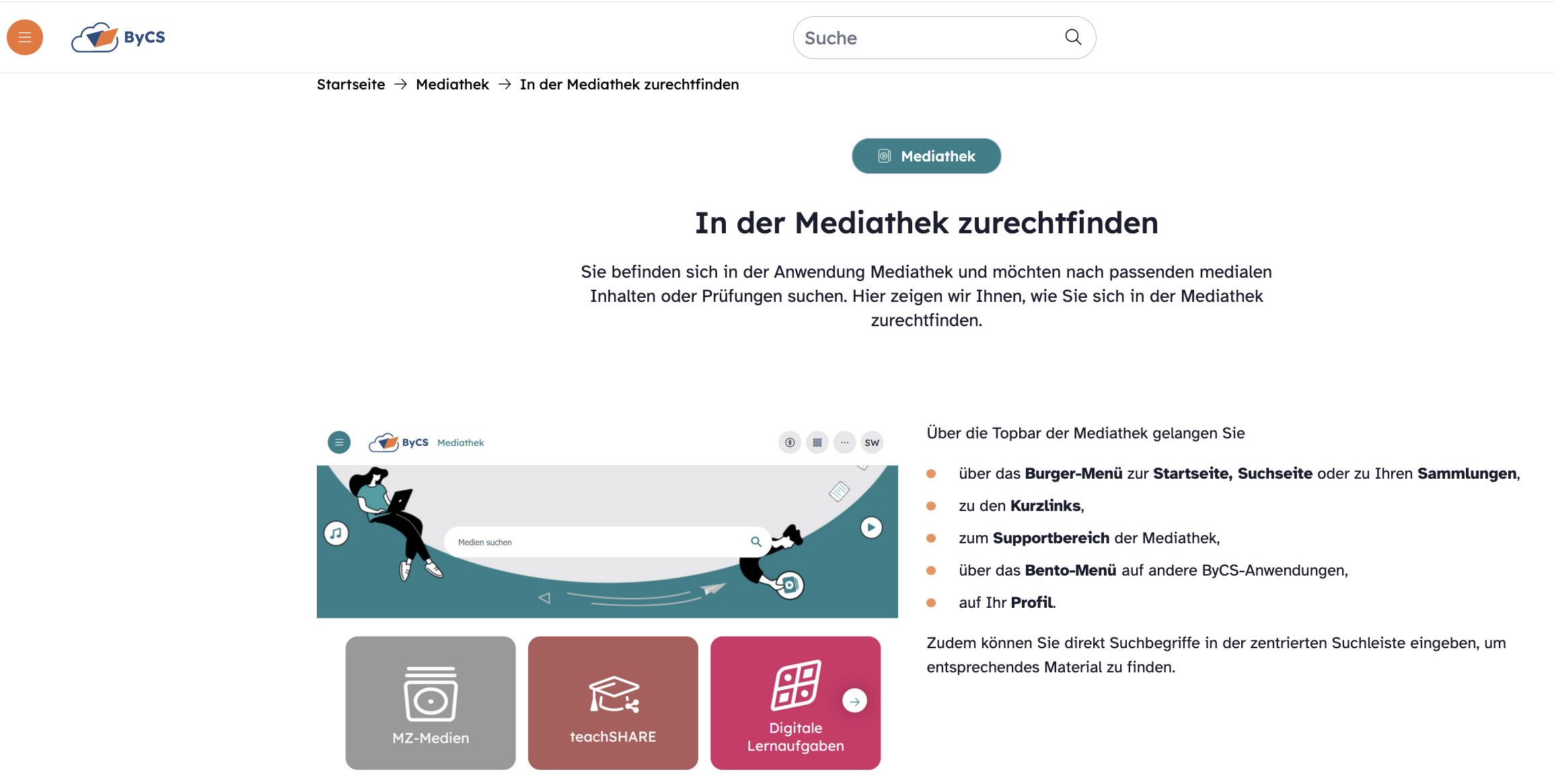 Sie finden auch Tutorials zu den ByCS-Bereichen.