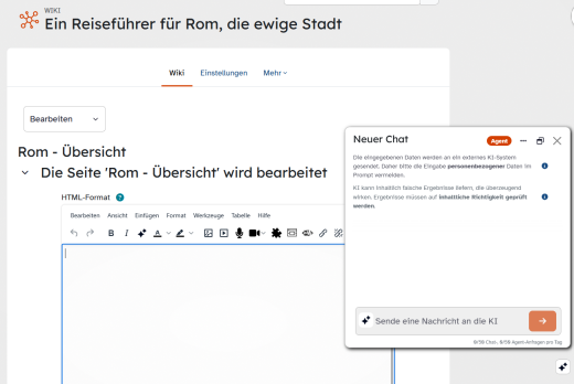 Viele Aktiväten der Lernplattform haben ganz bestimmte Anforderungen an die Formatierung. Der Agent hilft Ihnen beispielsweise dabei, Inhalte jeweils passgenau zu erstellen.
