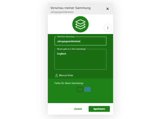 Die noch engere Verknüpfung von Mediathek und Prüfungsarchiv ermöglicht es den Nutzenden, nun auch Sammlungen anzulegen, in denen sowohl Prüfungen als auch Medien abgelegt werden können. Die Nutzenden können darüber hinaus bei der Farbe der Sammlungs-Kachel zwischen der Mediatheks-Farbe und der Prüfungsarchiv-Farbe wählen, um auch optisch erkennbar zu machen, was die Sammlung primär enthält.